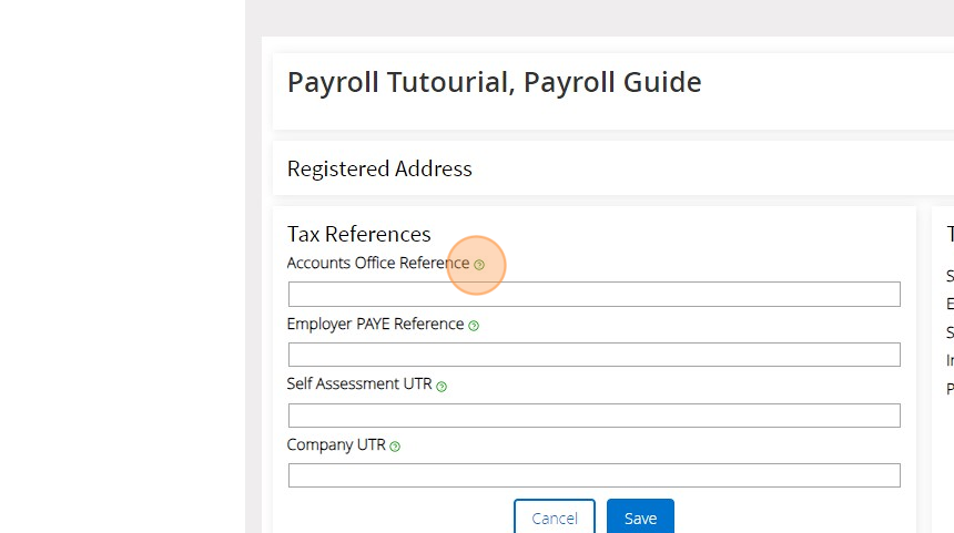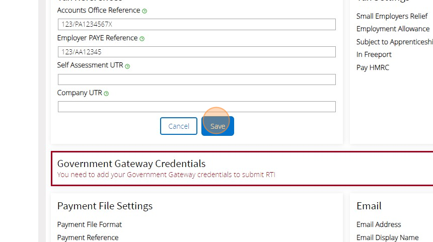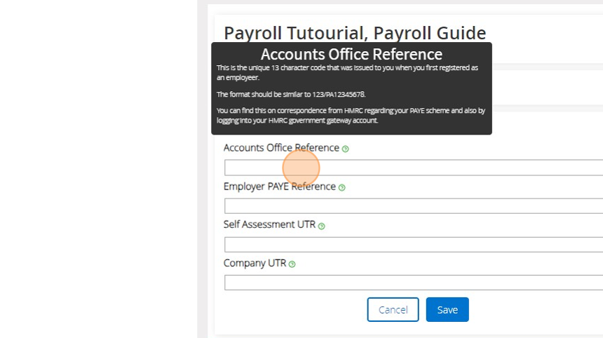 5 Enter in your HMRC assigned references for the as relevant. The Accounts Office and PAYE reference are required in order to submit information directly to the HMRC from MyFundAccounting
