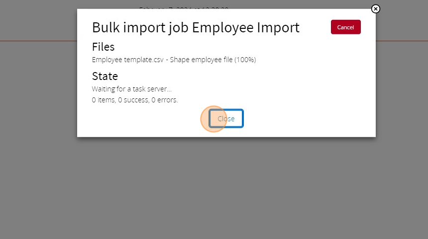 3 Wait for the state of the task in the "Employee bulk import" list to change to complete. If there are any issues with the import you will be able to see the errors in the pop-up that appears by clicking on the task in the list. You may need to refresh the page for an update on the import.