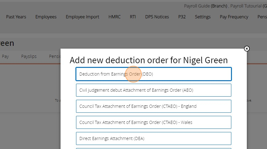 7 If you have received instruction of any additional deductions to be made on the employees salary you can add them under the "Deduction Orders" tab