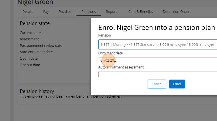 1 Enter the date the employee joined pension scheme and confirm the eligibility status of the enrolment e.g. Eligible being they are fully enrolled