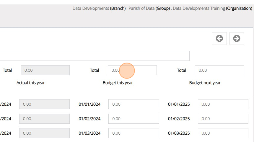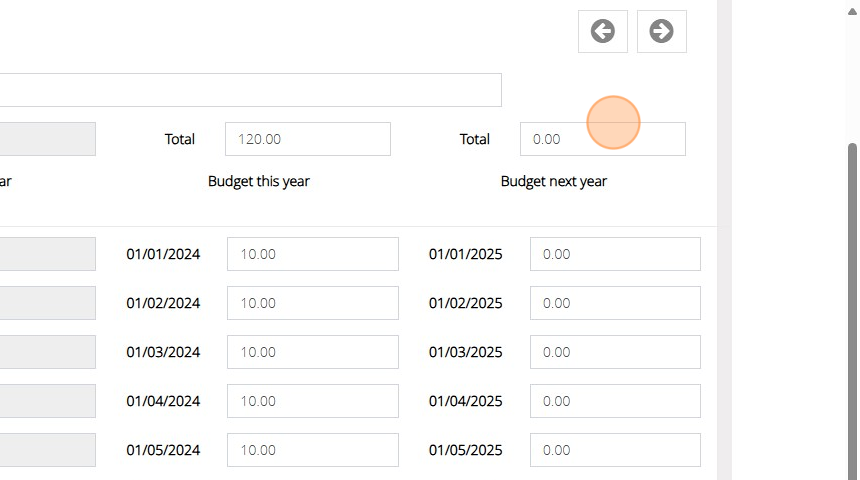 9. If you Enter the amount in the total Column this will automatically be divided between the 12 months. Alternatively you can freely enter the amount in each month