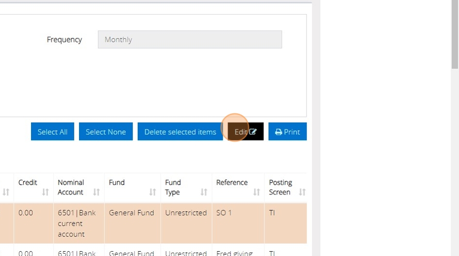 18. If you wish to edit the standing order you can click the 'Edit' button. If you wish to delete the standing order, you can click the 'Delete selected items' button.