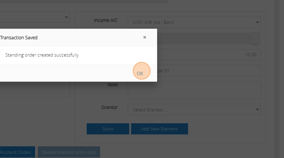14. You will then be notified that the standing order has been created successfully. You can click OK.