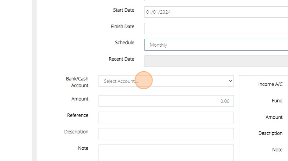 8. You can then enter the details of the transaction in the same way that you would for any normal income transaction. First, select the bank account this will post to.