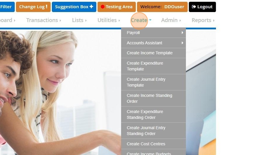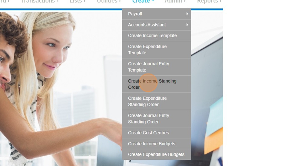 Tip: Creating Expenditure standing orders works in exactly the same way. You can just reach it by going to Create > Create Expenditure standing orders.