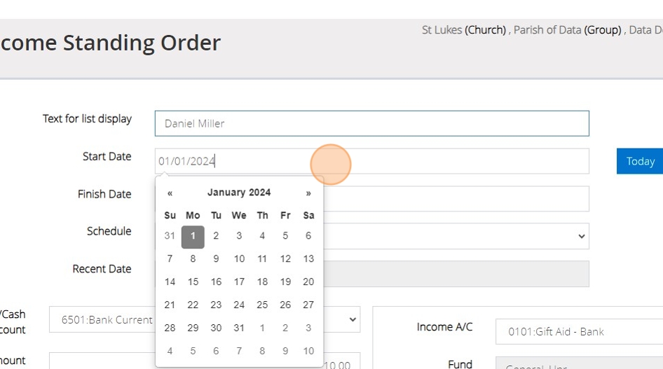 6. If the standing order already has a date at which it is set to finish, you can also enter that in the 'Finish Date' box.