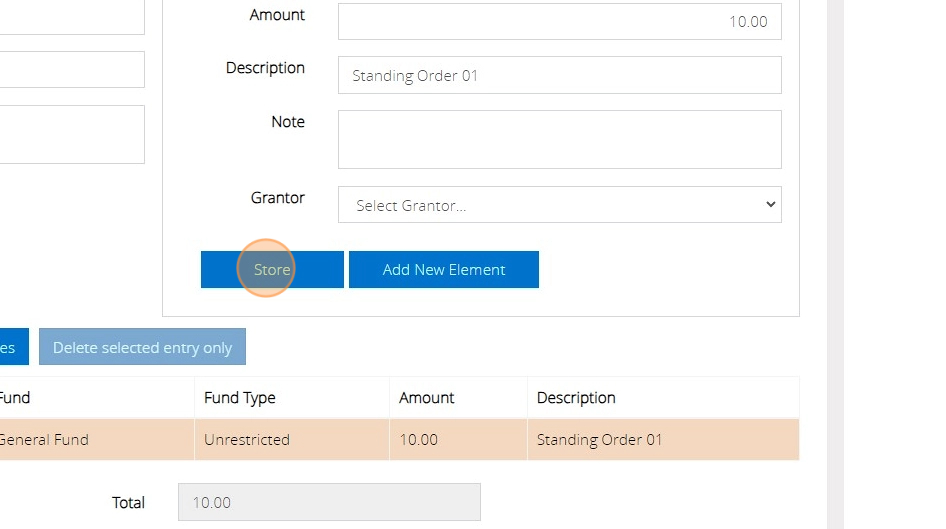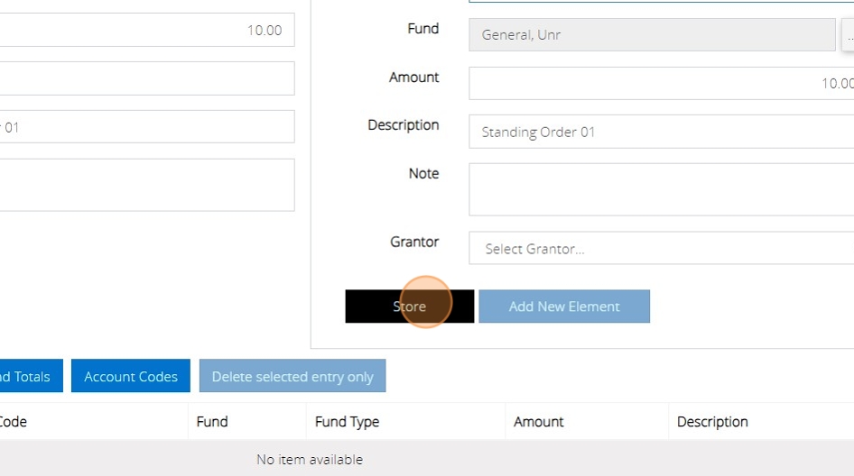 12. Once you have filled in all the details of the transaction, click the 'Store' button.