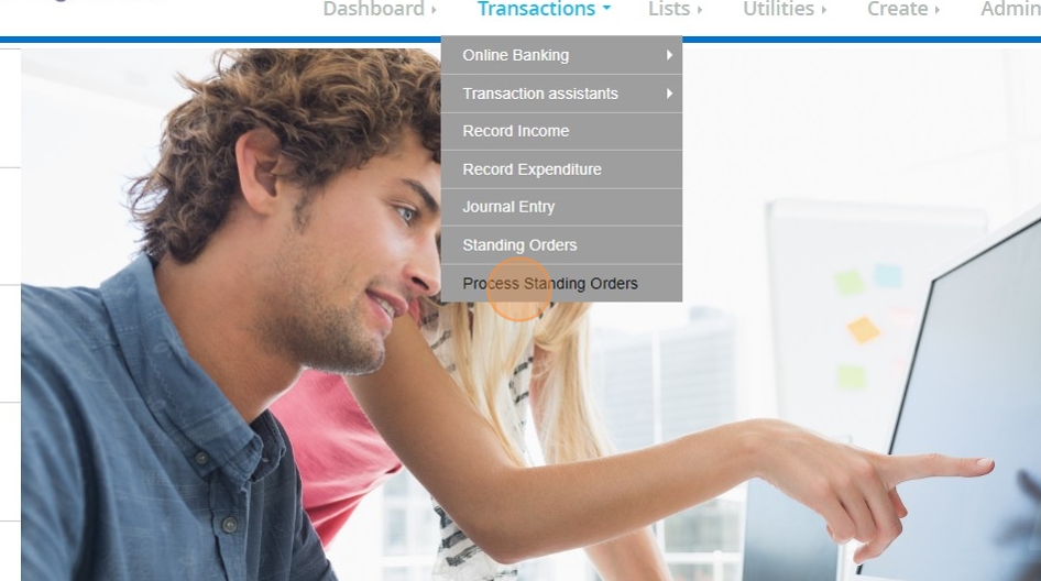22. Under the Transactions menu, click "Process Standing Orders"