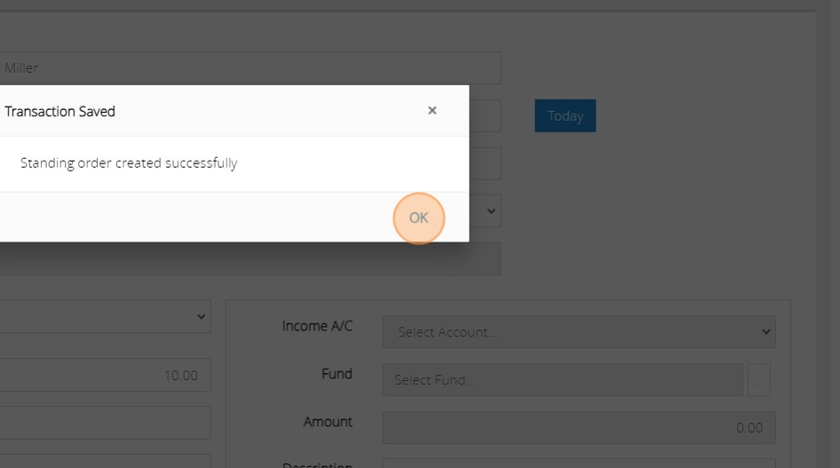 21. You will see the confirmation message that the standing order has been created successfully. Click 'OK'.