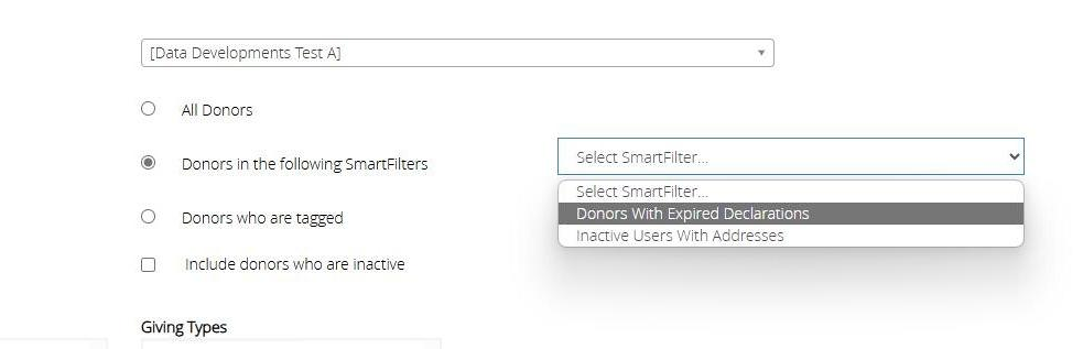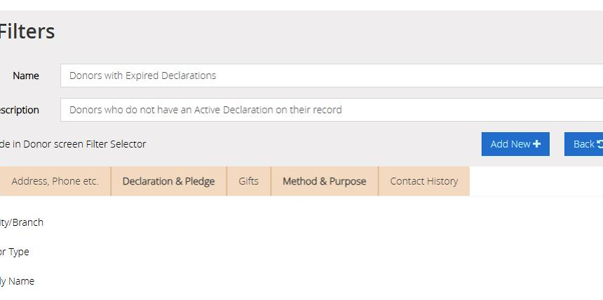 For instance, if you add a donor record following the creation of the smart filter and they do not have an active declaration, their name will appear here.