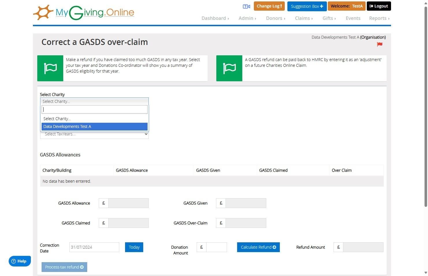 Tip: The following steps will assist you in correcting a GASDS Claim that has already been submitted to HMRC.