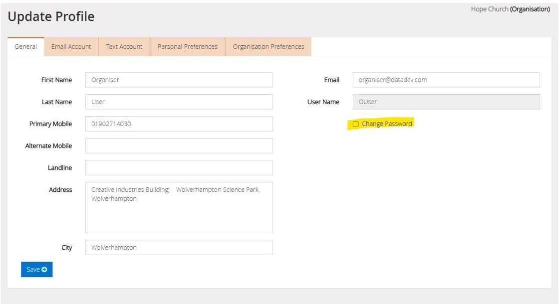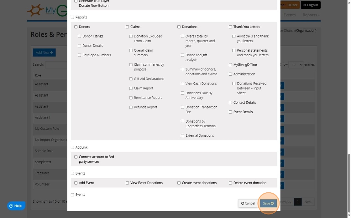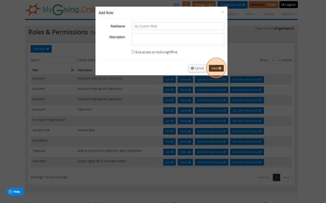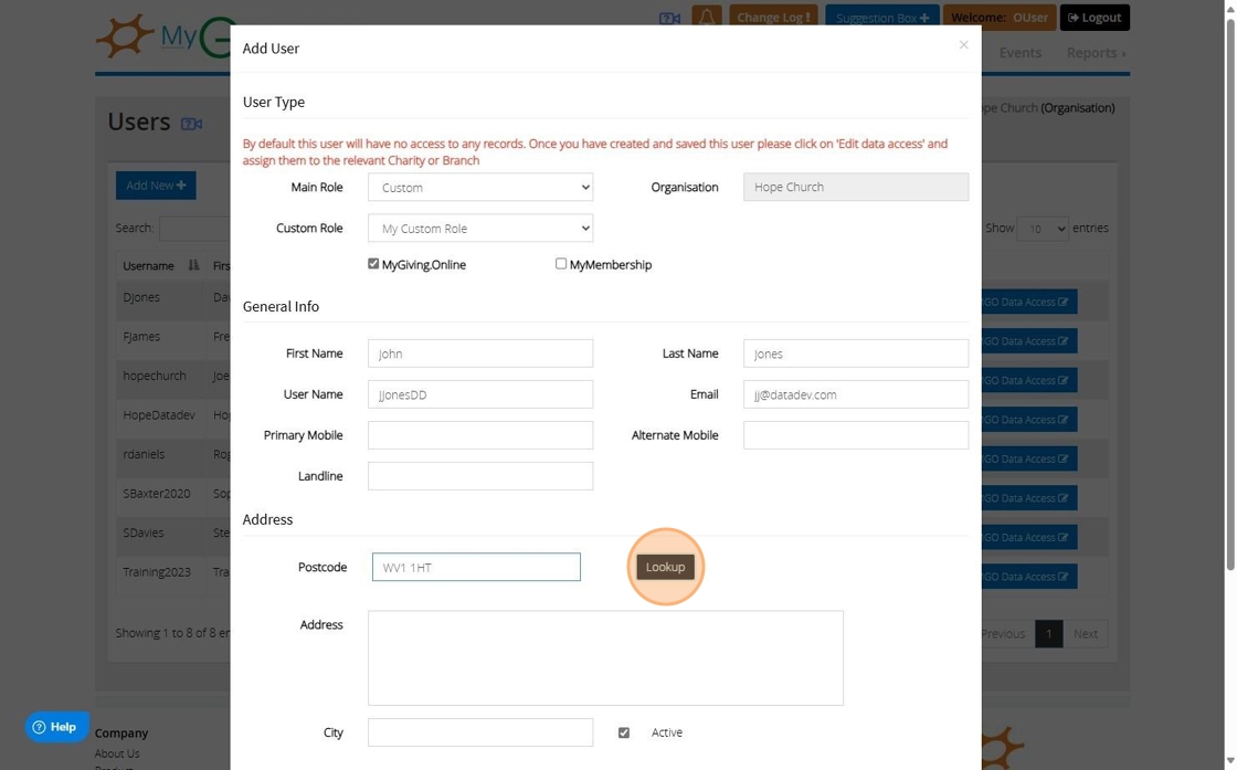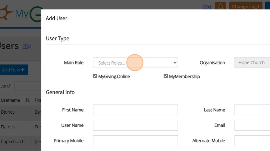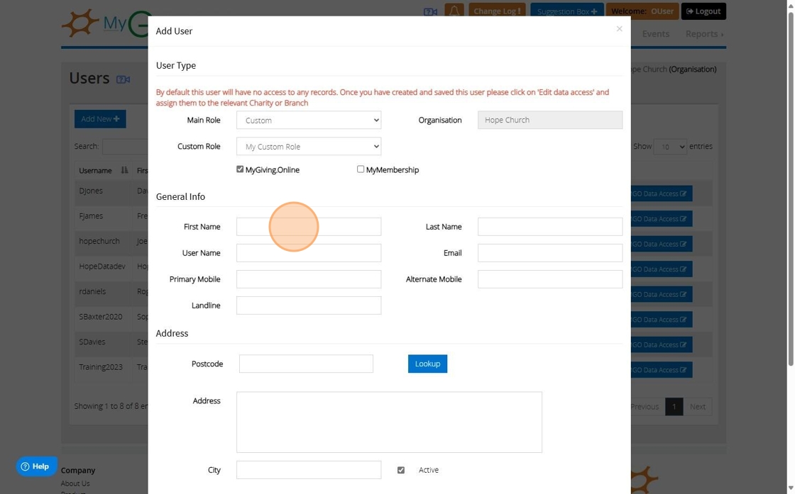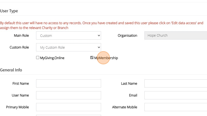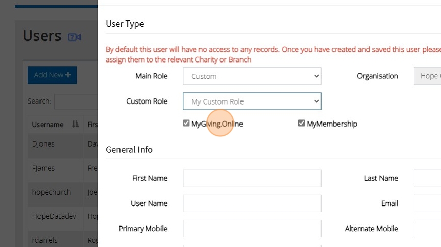 16. Checking "MyGiving.Online" will allow the user to log into MyGiving using the details you set up
