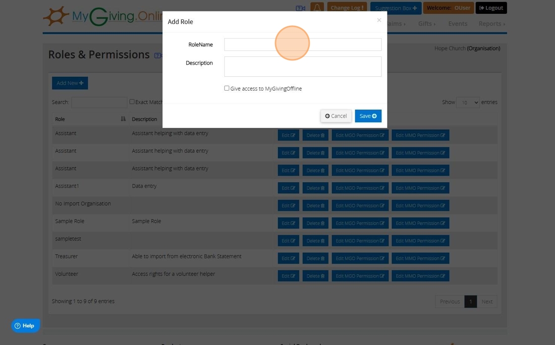 4. Name the new role depending on who you would assign it to e.g. Assistant, Gift Aid Secretary
