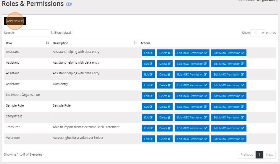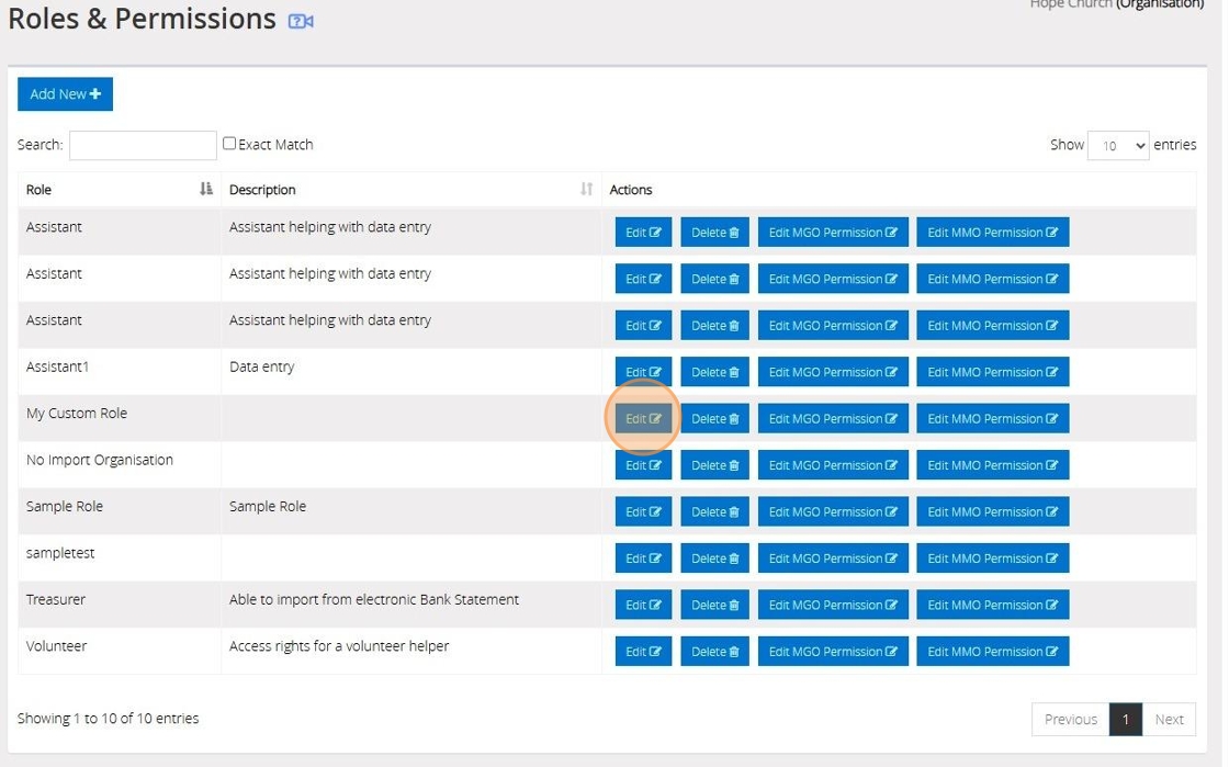 9. Click "Edit MGO Permission" to begin choosing what permissions this role will give the user. "Edit MMO Permission" may be available if you use MyMembershipManager.Online.
