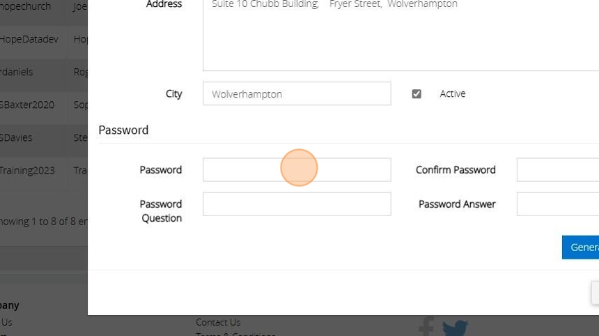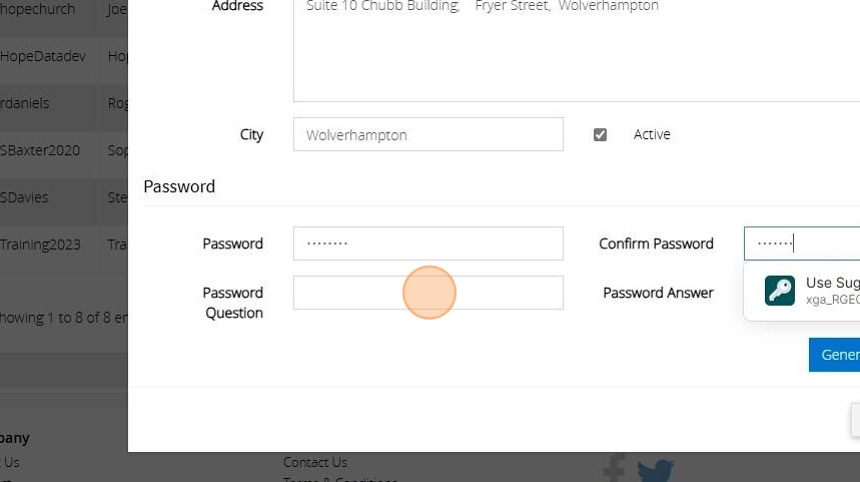 23. Enter in a password question and answer. The user can update these once they log into the account