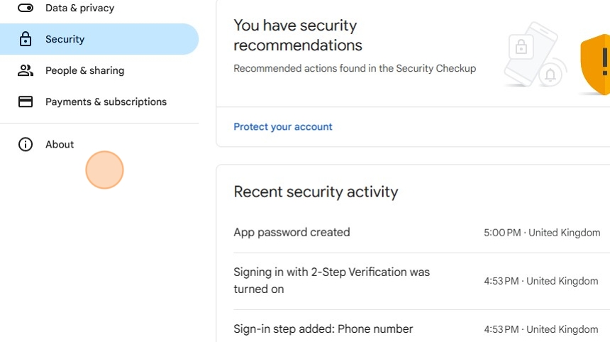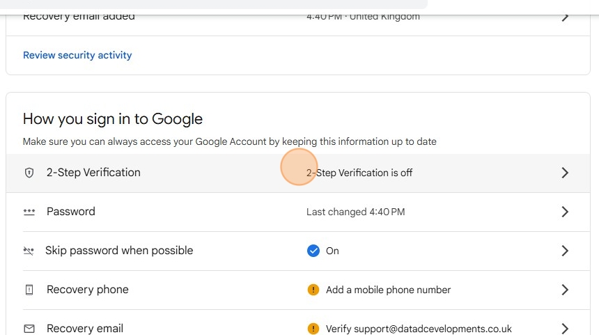 1. Navigate to https://myaccount.google.com/u/0/security?hl=en