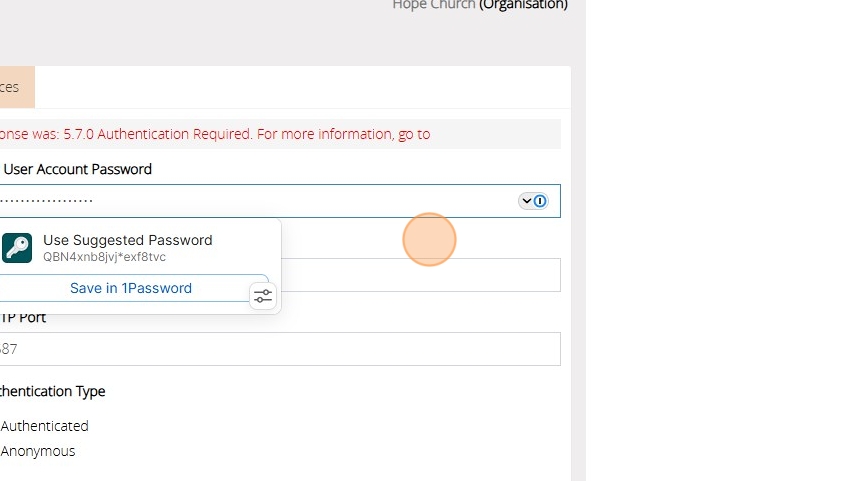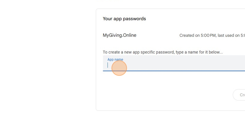 15. Go to MyGiving.Online and replace your usual email password with the app password in both password fields