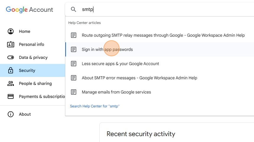 11. Click "Create and manage your app passwords" in the help article that opens up