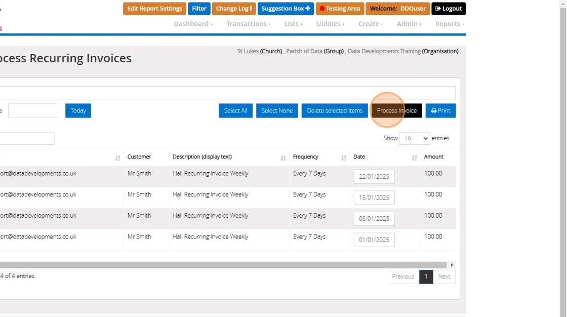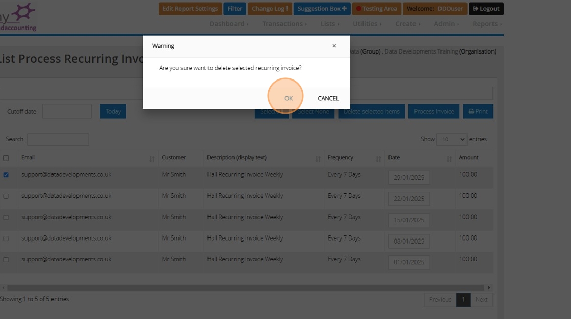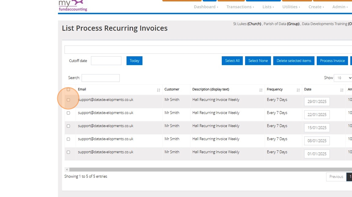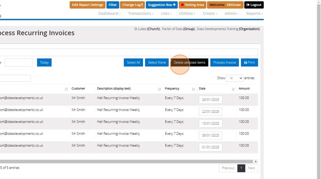 27. If you want to delete any of the invoices, once you have selected the invoices you wish to delete, click the 'Delete selected items'