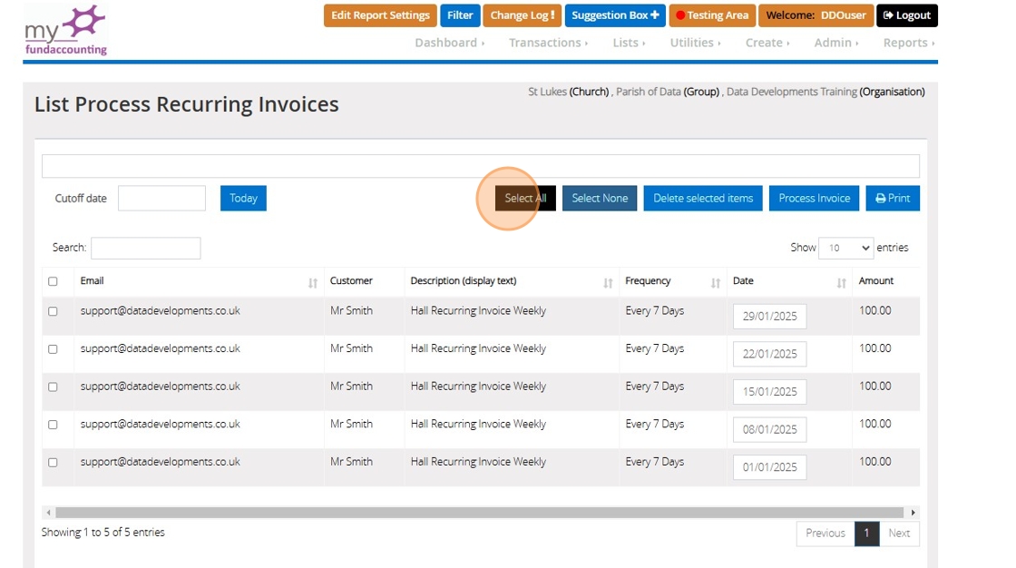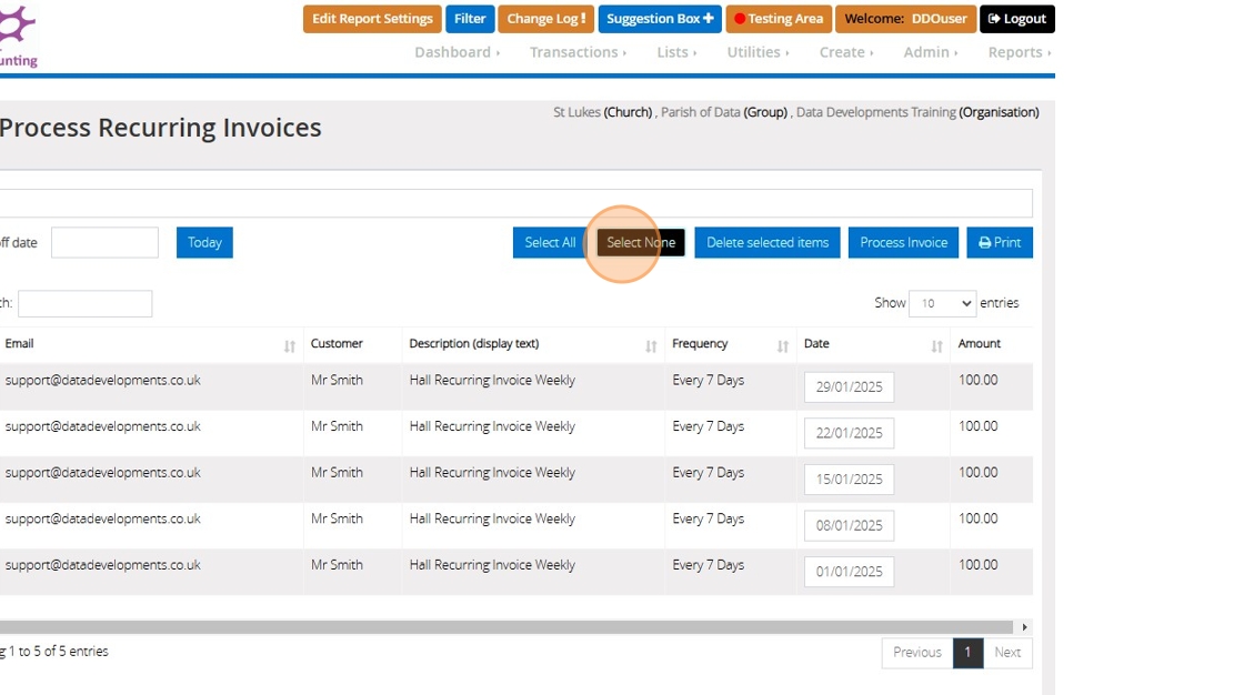 26. Click 'Select none' if you want to deselect all of the invoices.