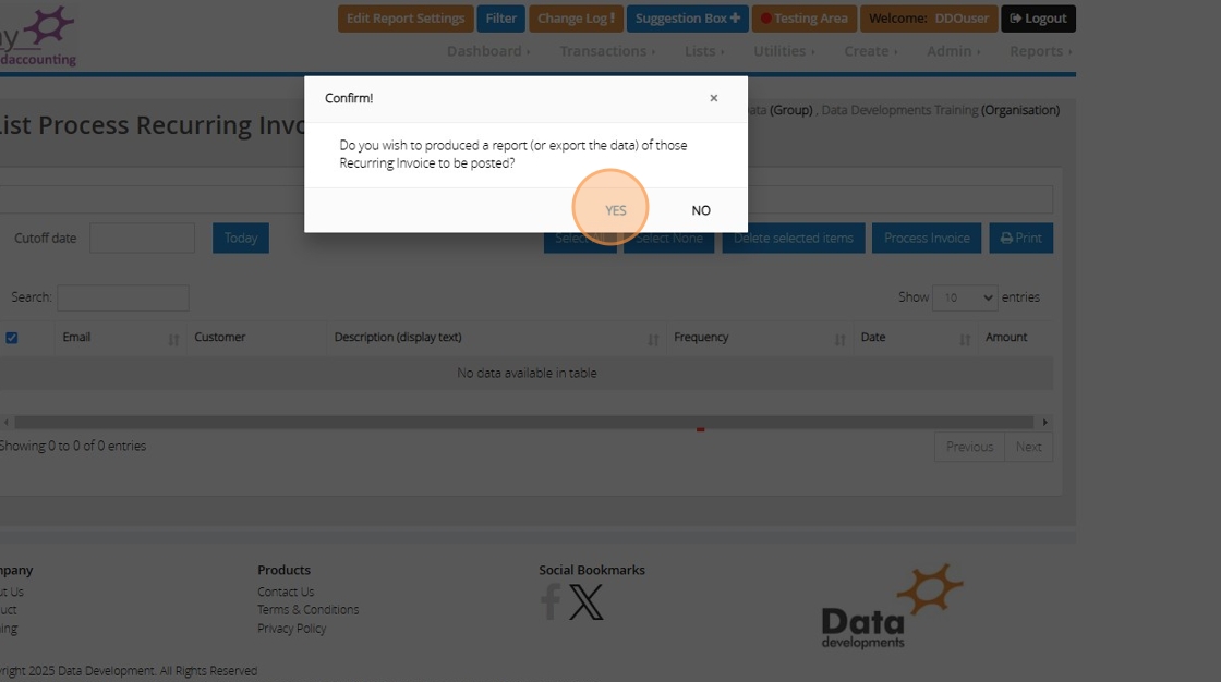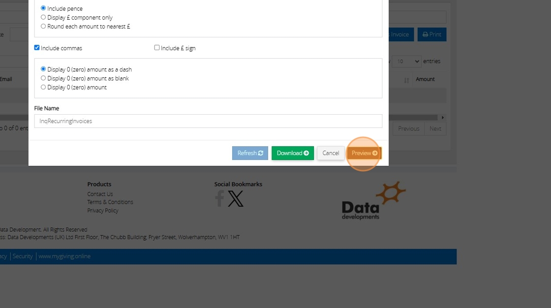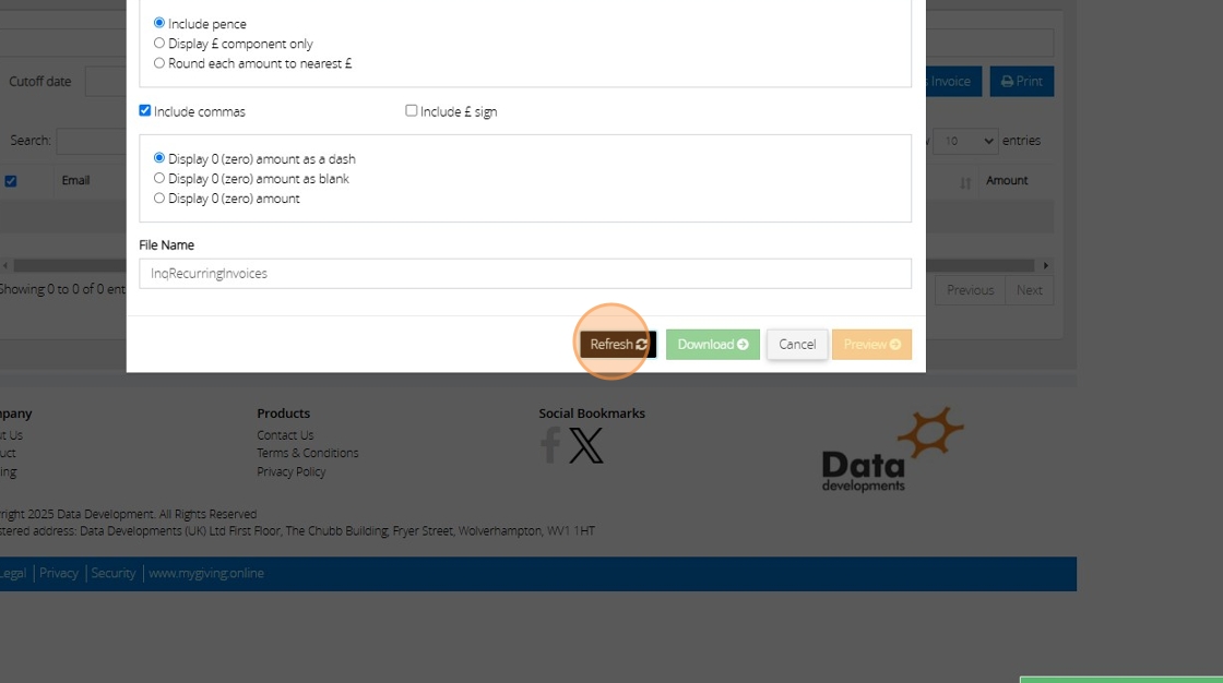 31. If you wish to produce a transactions report of the invoices you have just processed, Click "Refresh"