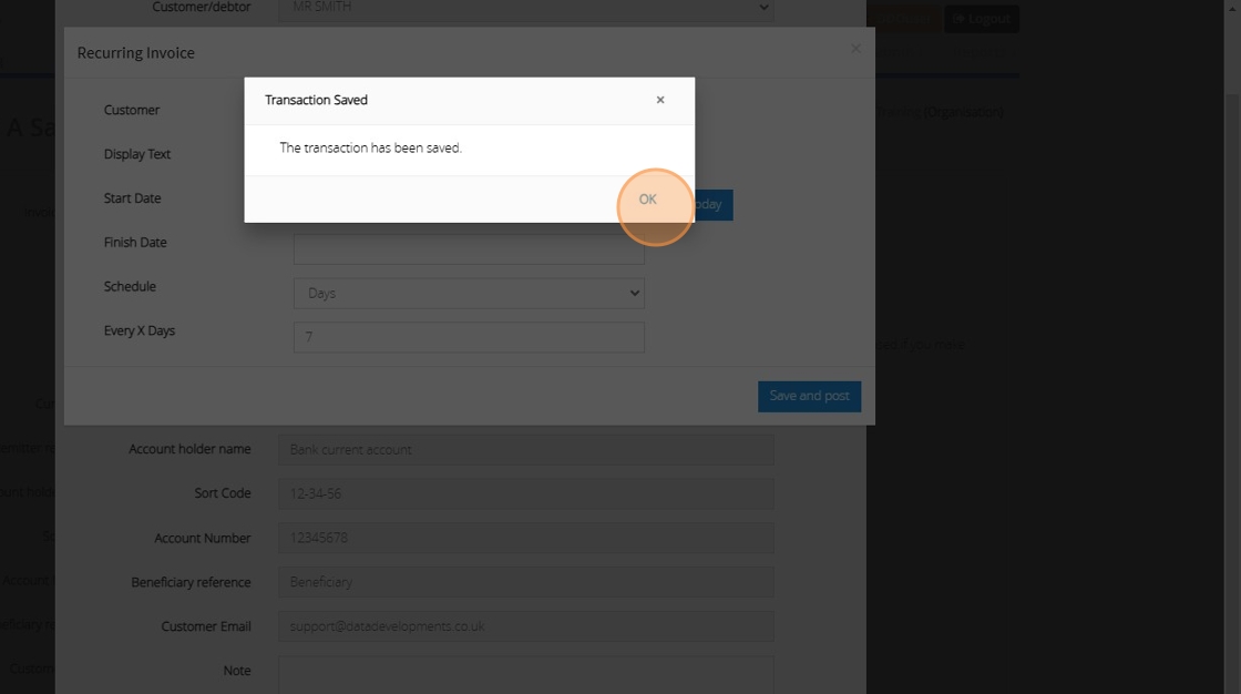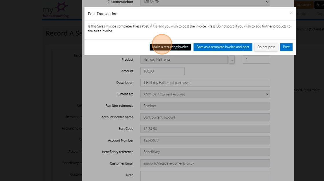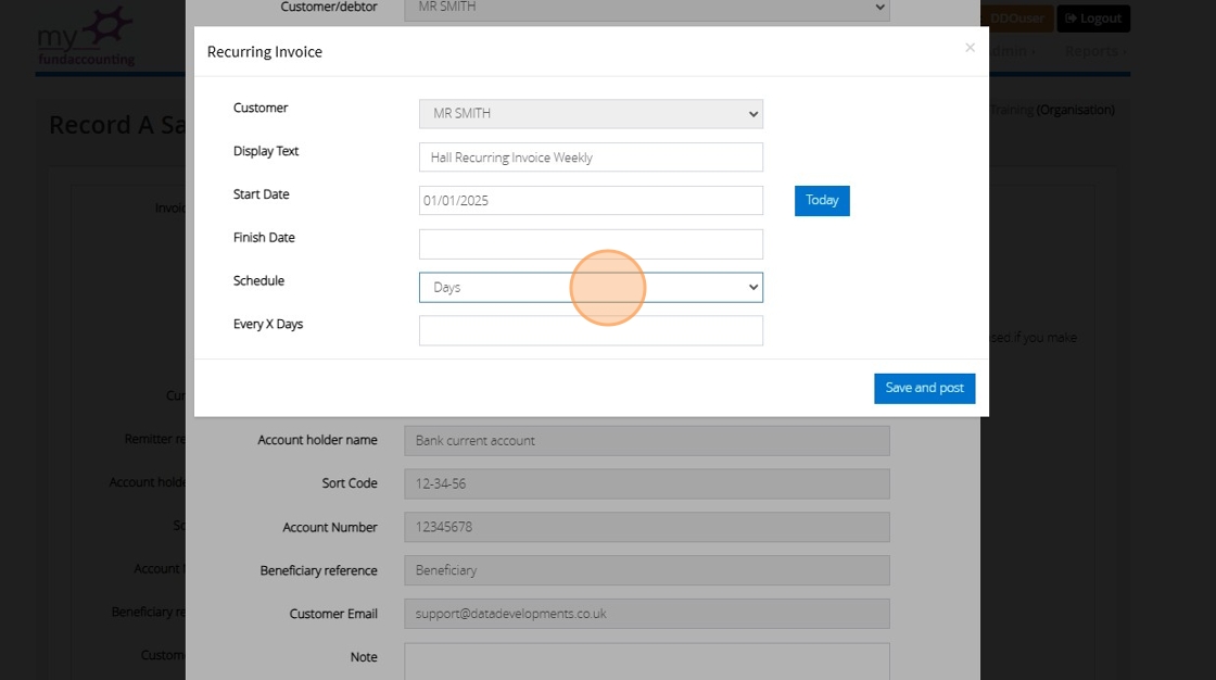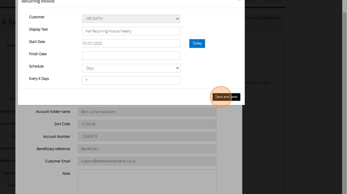 20. When you are ready to create the recurring invoice, click "Save and post"