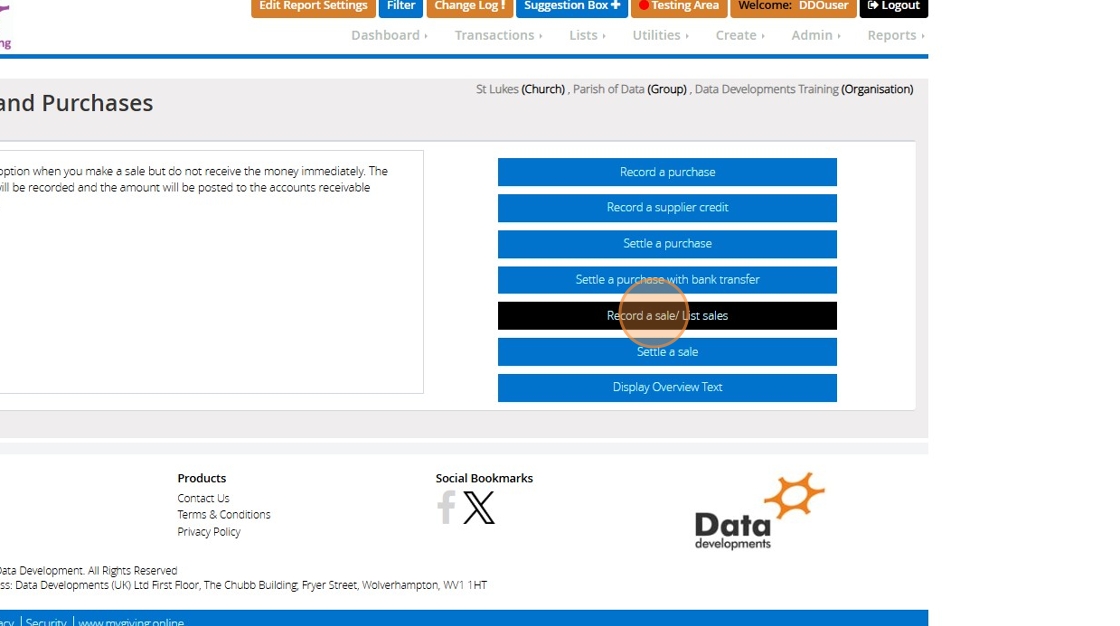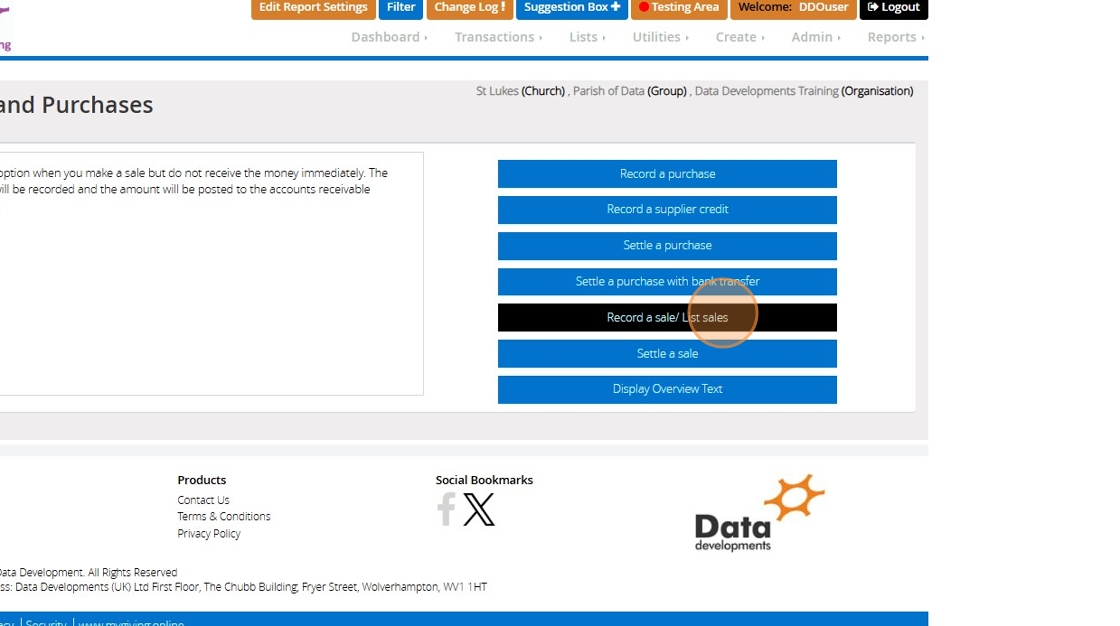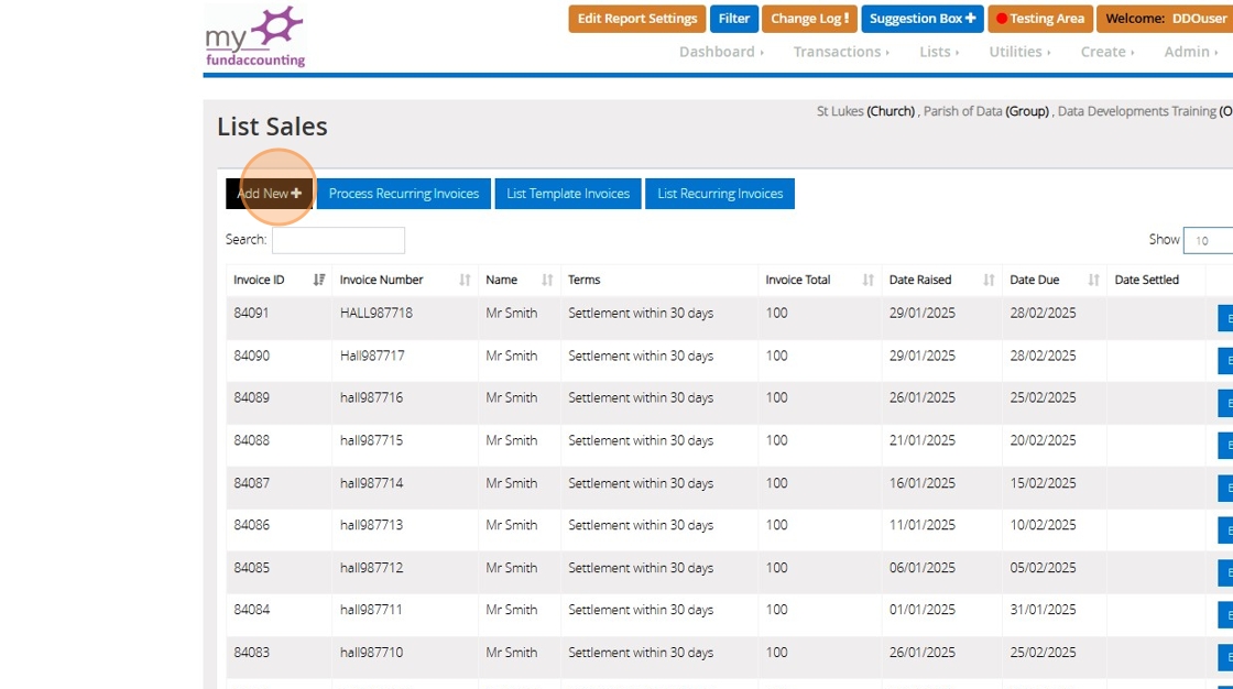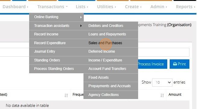 33. To view the invoices in the List Sales screen, go to the "Transactions" menu