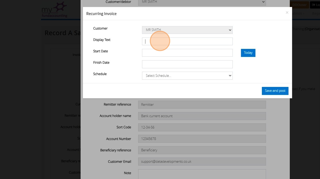 16. Fill in the name of this recurring invoice that will help you recognise it in the list in the 'Display text' box.