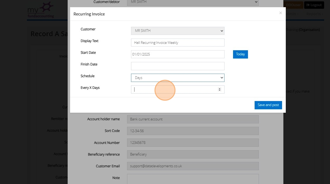19. If you have selected the 'Days' option, you can then enter the number of days between each invoice that will generate.