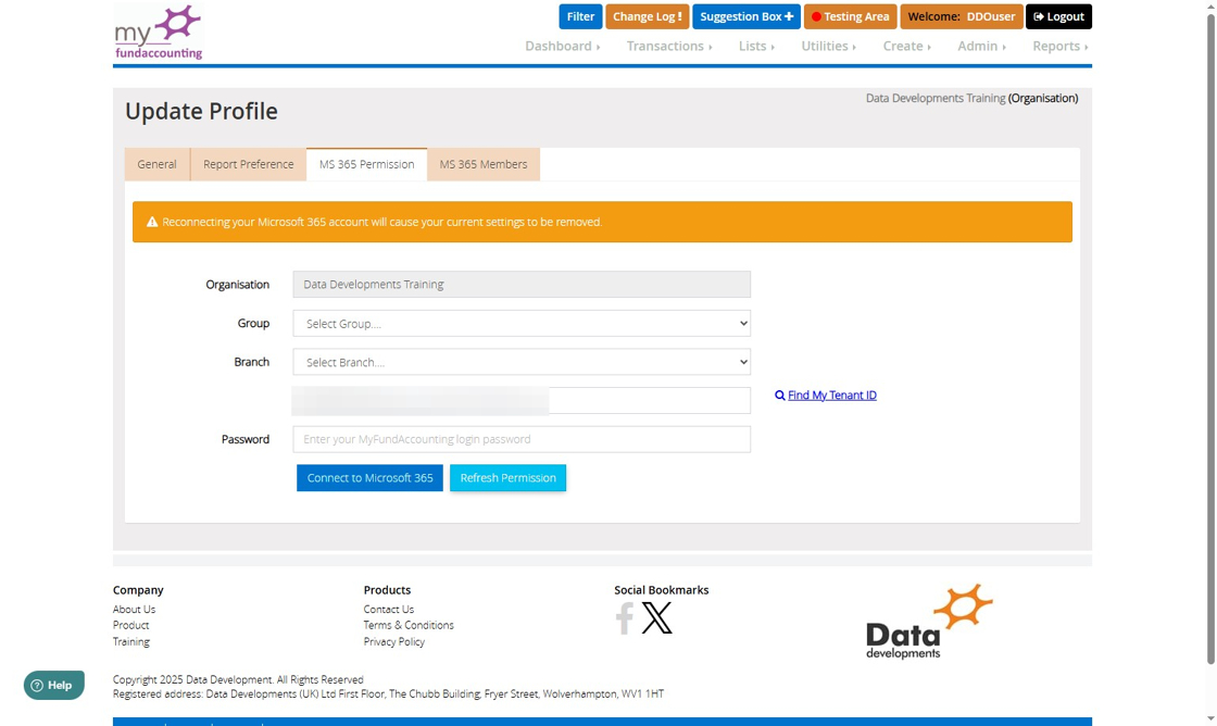 10. When you have completed the steps above, you will need to link your MyFundAccounting.Online account with your Microsoft 365 account, and link any other users within the organisation .